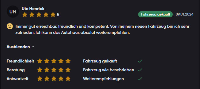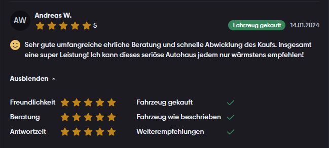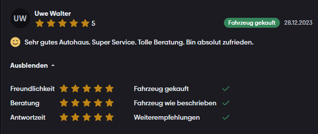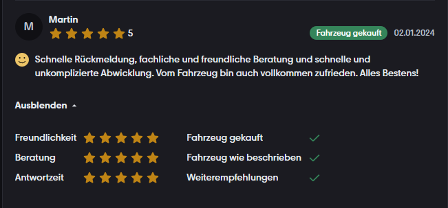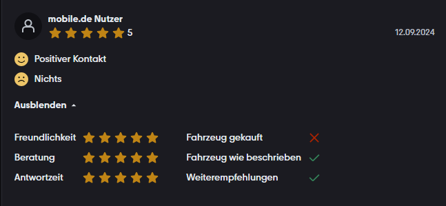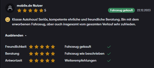 Unsere Bewertungen auf mobile.de ★★★★★ 4,8/5 · 126 Bewertungen. Auf mobile.de lesen